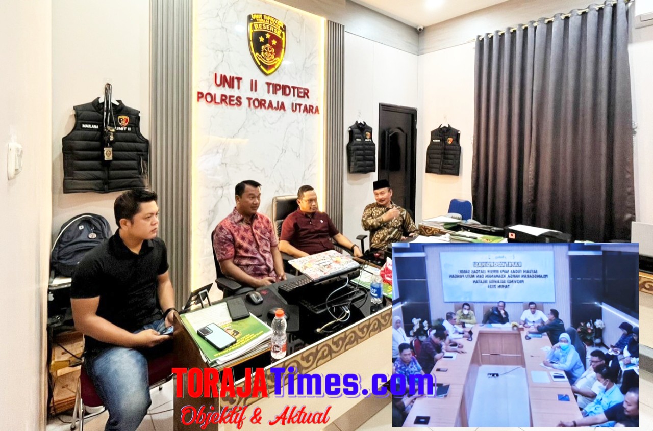 TORAJA UTARA, Toraja times.com | Upaya menjaga stabilitas harga dan mutu pangan terus diperkuat. Kasat Reskrim Polres Toraja Utara, IPTU Ruxon, bersama Kepala Dinas KetahananPangan dan Perikanan (Ketapang), Deddy Elward Rombe Raru dan Kepala Dinas Perindagkop Toraja Utara, Amos Harma Pattola, mengikuti zoom meeting arahan Deputi III Satgas Saber (Sapu Bersih) pelanggaran terkait harga dan kualitas bahan pangan jelang Idul Fitri 2026.