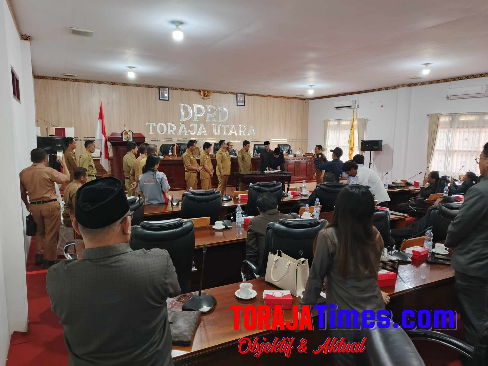 Rapat Paripurna DPRD Toraja Utara tentang persetujuan bersama rancangan peraturan daerah tentang perubahan APBD Kabupaten Toraja Utara di hadiri Bupati dan Wakil Bupati, Frederik Victor Palimbong dan Andrew Branch Silambi, Sekda Toraja Utara yang juga ketua TAPD, Salvius Pasang, para Staf Ahli, para Asisten, dan Kepala OPD serta beberapa Camat.