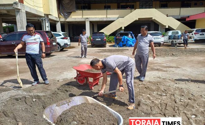Personel Polres Toraja Utara Gelar Kerja Bakti Bersihkan Lingkungan Mapolres