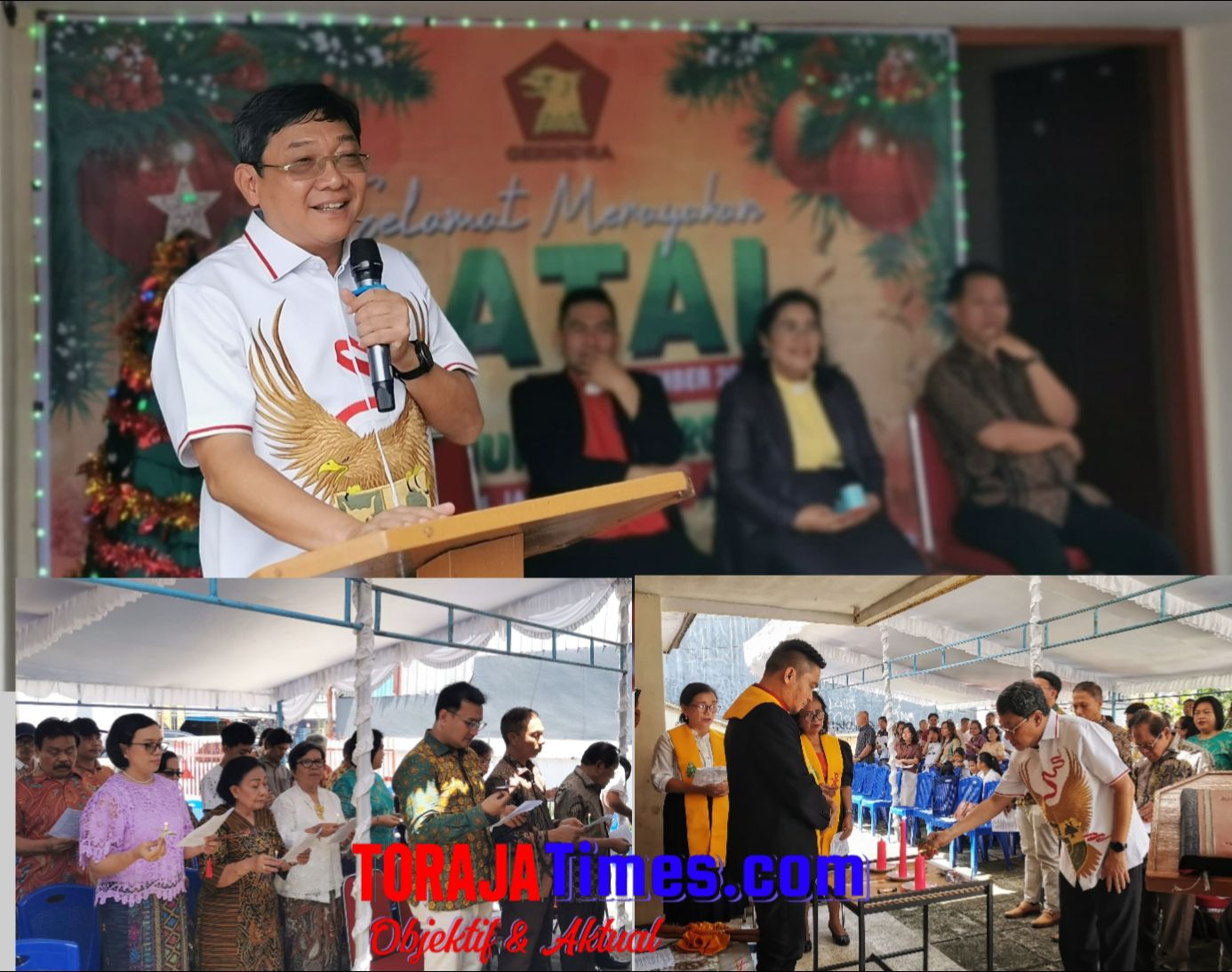 Perayaan Natal Partai Gerindra dihadir Ketua DPC Partai Gerindra Toraja Utara yang juga Bupati Toraja Utara, Frederik Victor Palimbong di dampingi Sekertaris DPC Partai Gerindra, Paulus Kondorura.