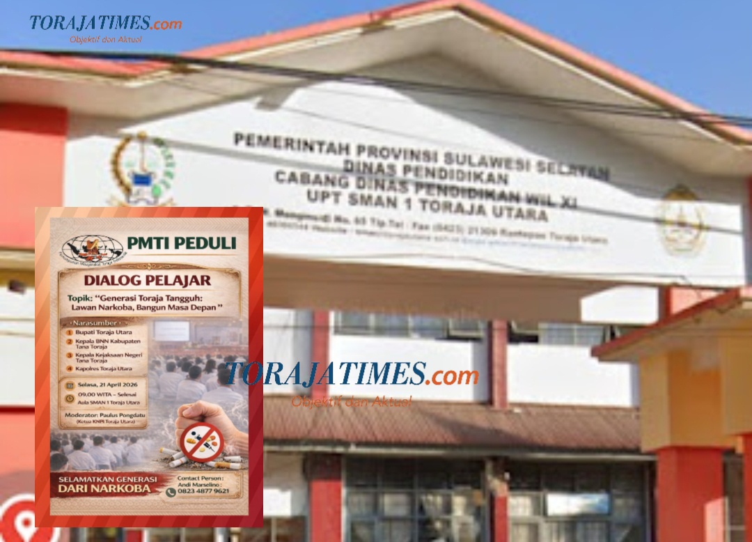 TORAJA UTARA, Torajatimes.com | Besok, Selasa 21 Apri 2026 akan di gelar Dialog Pelajar oleh Perhimpunan Masyarakat Toraja Indonesia (PMTI). Kegiatan tersebut dilaksanakan di Aula SMA Negeri 1 Toraja Utara pada Pukul 09.00 Wita.