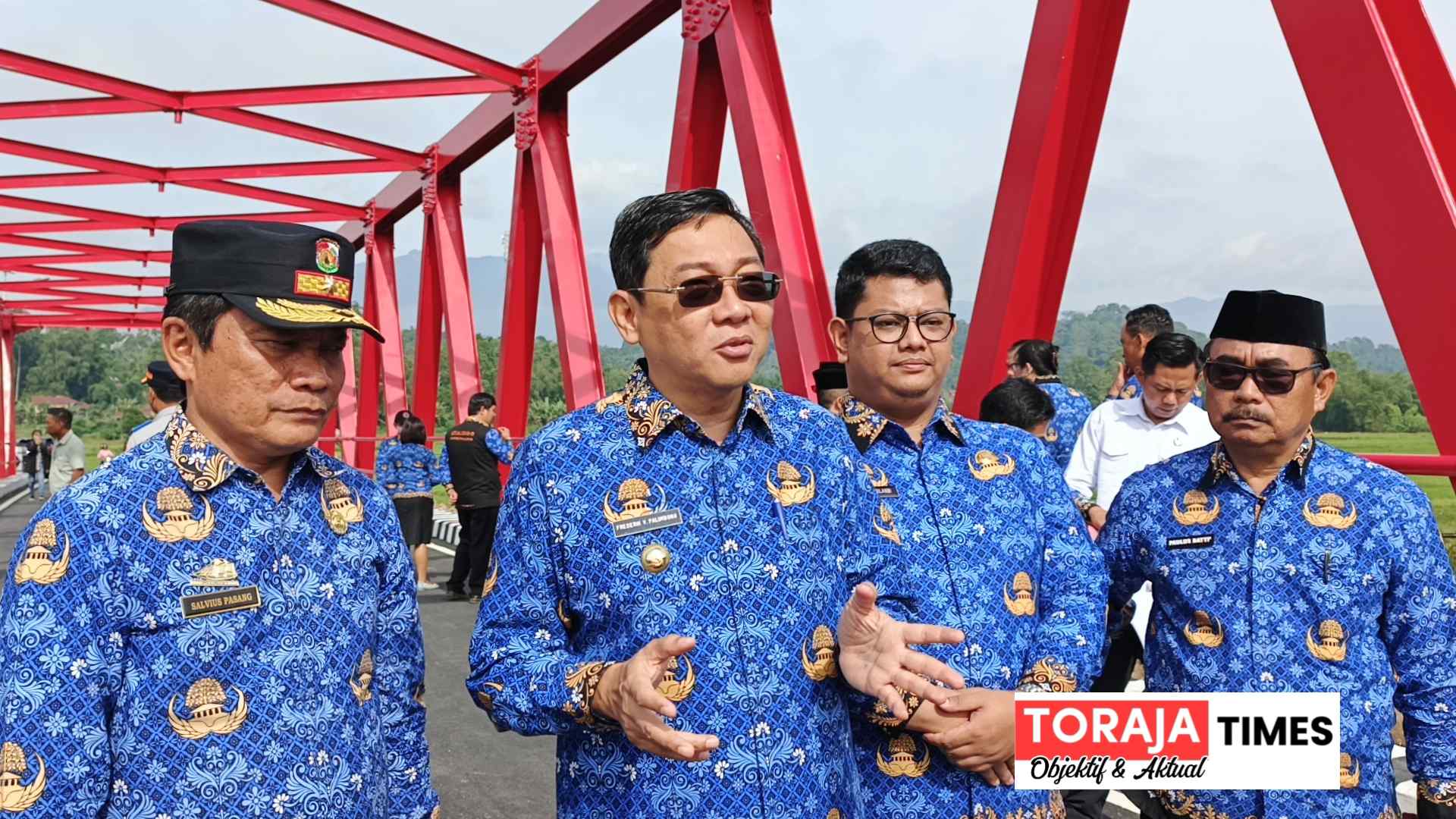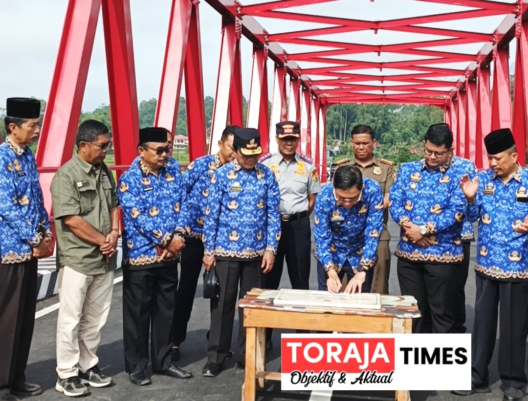 TORAJA UTARA, TORAJA TIMES.com | Bupati Toraja Utara, Frederik Victor Palimbong meresmikan jembatan Ne’ Gandeng di Malakiri Lembang Palangi, Kecamatan Balusu, Senin (26/1/2026). Seperti diberitakan sebelumnya, jembatan lama Ne’ Gandeng mengalami penurunan pada tingan tengah, sehingga pemerintah melakukan pembangunan baru dengan lebar 7 meter dengan panjang bentangan 50 meter.