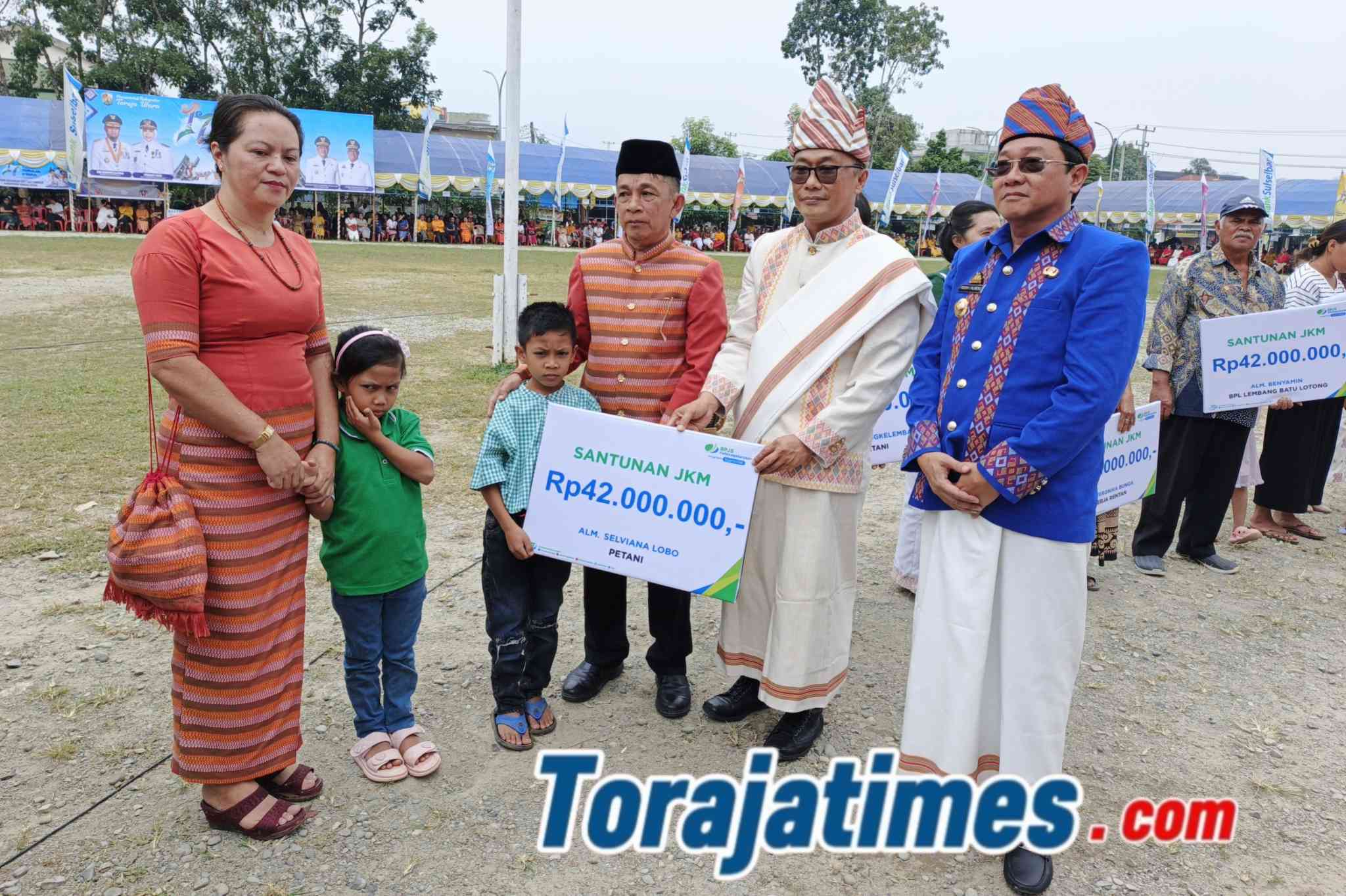 Pada Peringatan Hari Jadi Kabupaten Toraja Utara Ke-17, BPJS Ketenagakerjaan menyerahkan santunan kepada 6 orang ahli waris. Penyerahan dilakukan secara simbolis kepada penerima jaminan kematian masing-masing sebesar Rp42 juta.