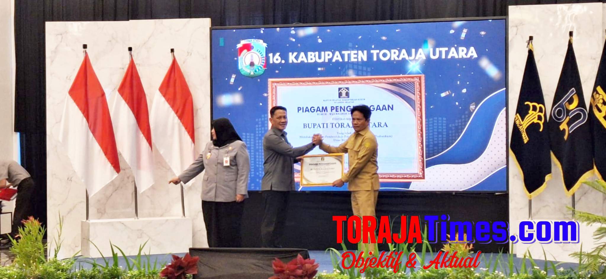 MAKASSAR, TORAJA TIMES.com | Sekertaris Daerah Kabupaten Toraja Utara, Salvius Pasang, SP., MP mewakil Pemerintah Kabupaten Toraja Utara menerima penghargaan dari Kantor Wilayah (Kanwil) Kementerian Hukum Provinsi Sulawesi Selatan (Kemenkum Sulsel) atas dukungannya terhadap pembentukan Pos Bantuan Hukum (Posbankum) di tingkat kelurahan/Lembang. Pemberian penghargaan tersebut, digelar di Aula Pancasila Kantor Wilayah Kemenkum Sulsel, Senin, (6/10/2025) di Makassar.