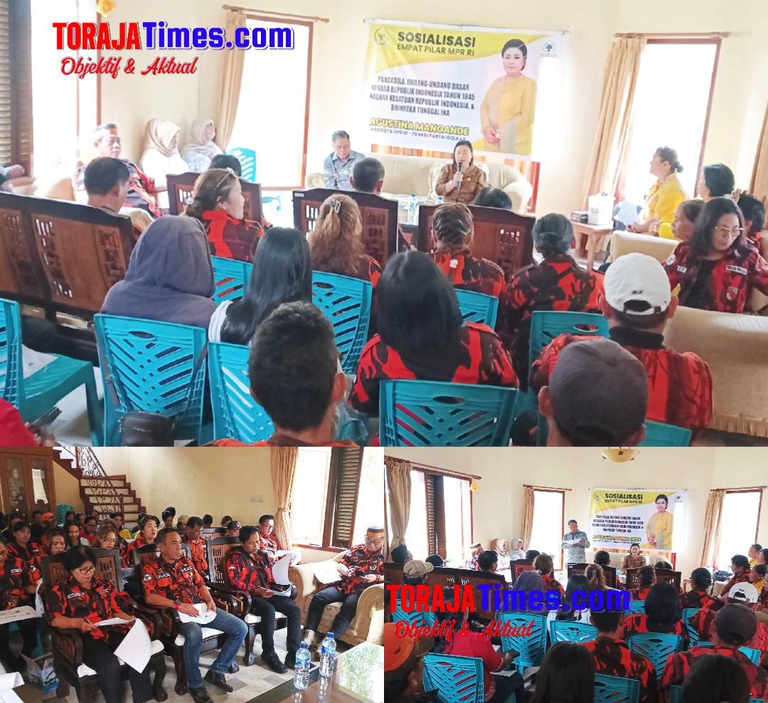 TORAJA UTARA, TORAJA TIMES.com | Anggota DPR RI/MPR, Agustina Mangande kembali menegaskan komitmennya dalam memperkuat wawasan kebangsaan melalui kegiatan Sosialisasi Empat Pilar MPR RI yang diselenggarakan di Aula Rumah Aspirasi Anggota DPR RI, jalan Frans Karangan (Lembah Keramat), Kecamatan Rantepao, Kabupaten Toraja Utara, Sabtu, 13 Desember 2025, pukul 09.00 – 12.00 WITA.