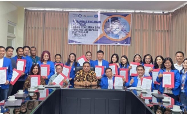 Tanda Tangan Kontrak Hibah Penelitian dan PKM Kemenristeksaitek, Rektor UKI Paulus: Ini Motivasi Bagi Dosen Lainnya Berkompetisi Skala Nasional