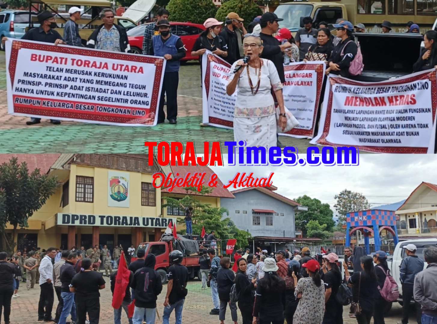 Ratusan dari keluarga Tongkonan Lino bersama Gerakan Mahasiswa Nasional Indonesia (GMNI) Toraja Utara mendatangi kantor DPRD Toraja Utara dengan menggelar aksi demonstrasi dengan membawa sejumlah spanduk dengan tulisan menolak keras Revitalisasi Lapangan Rante Rada’ Sa’dan.